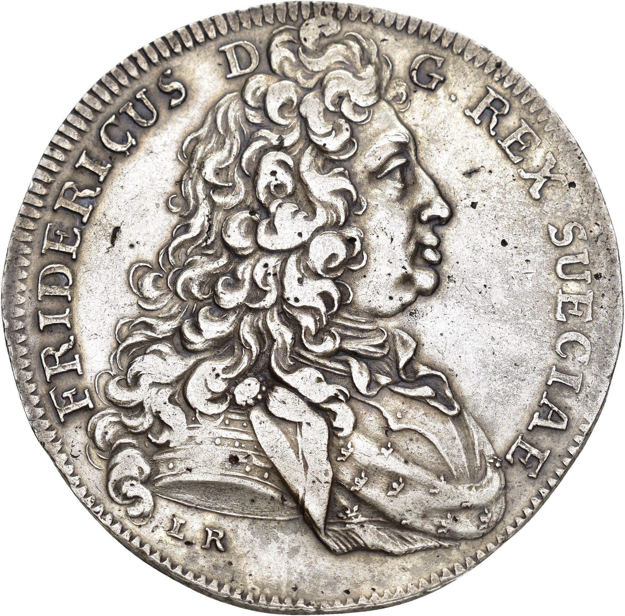 Taler 1733, Kassel. 29,15 g. Mintmaster Louis Rollin (1723-1744) Landgrave Frederick I, 1730–1751, King of Sweden since 1720. Armoured bust right, draped mantle, below L.R. / Crowned lions support crowned Swedish shield with Hessian inescutcheon; below, date above CASS (Cassel/Kassel).<BR>Not uncommon for this type, somewhat weakly struck and on imperfect planchets. Rare