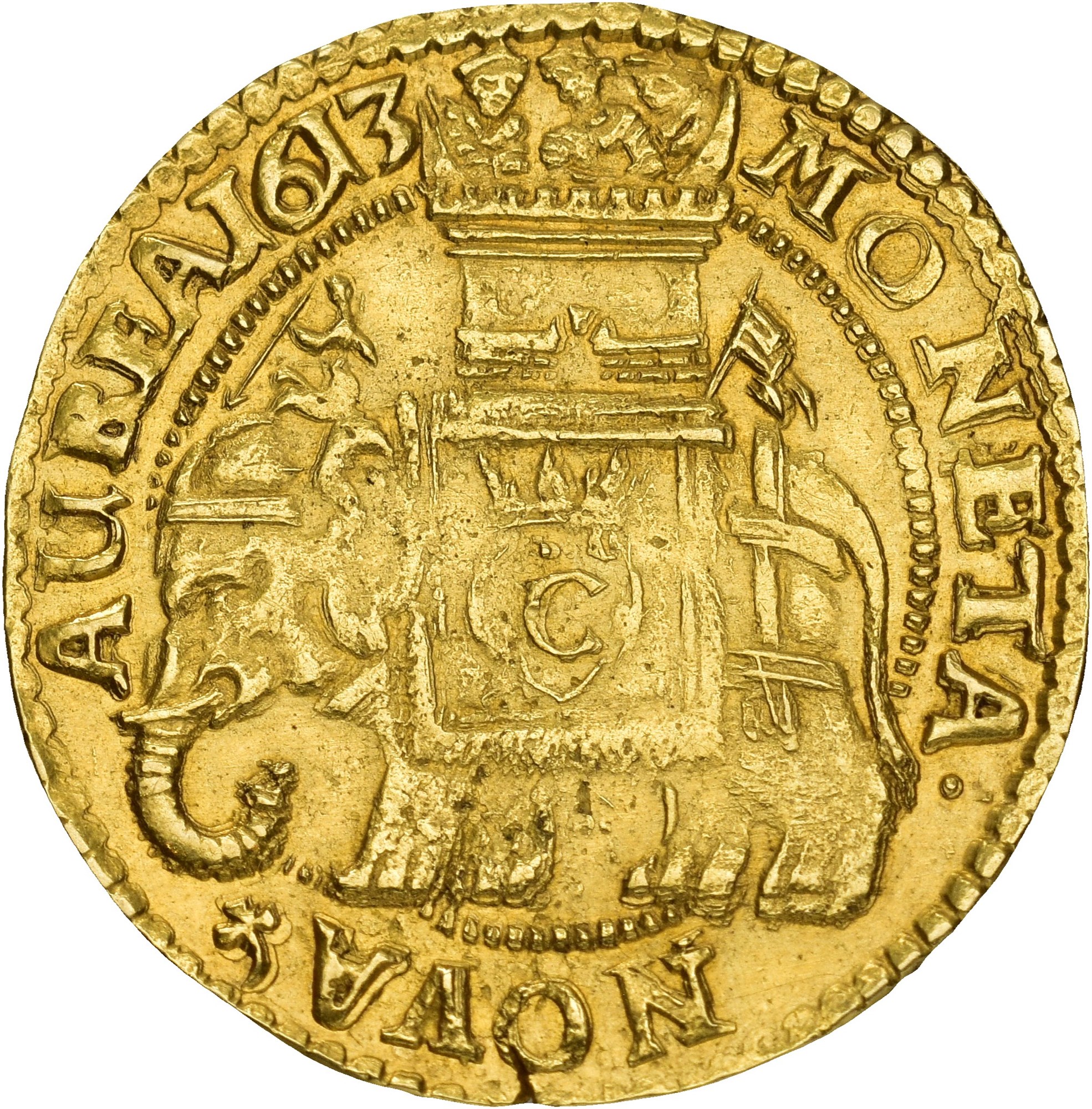 Rosenobel 1613, København. 8.63 g. Liten blanketrevne, let pusset i felter på advers. Uhyre sjelden. Av de 312 eksemplarer som ble preget er det kun få som har overlevd til i dag har ganske få eksemplarer overlevet til i dag.