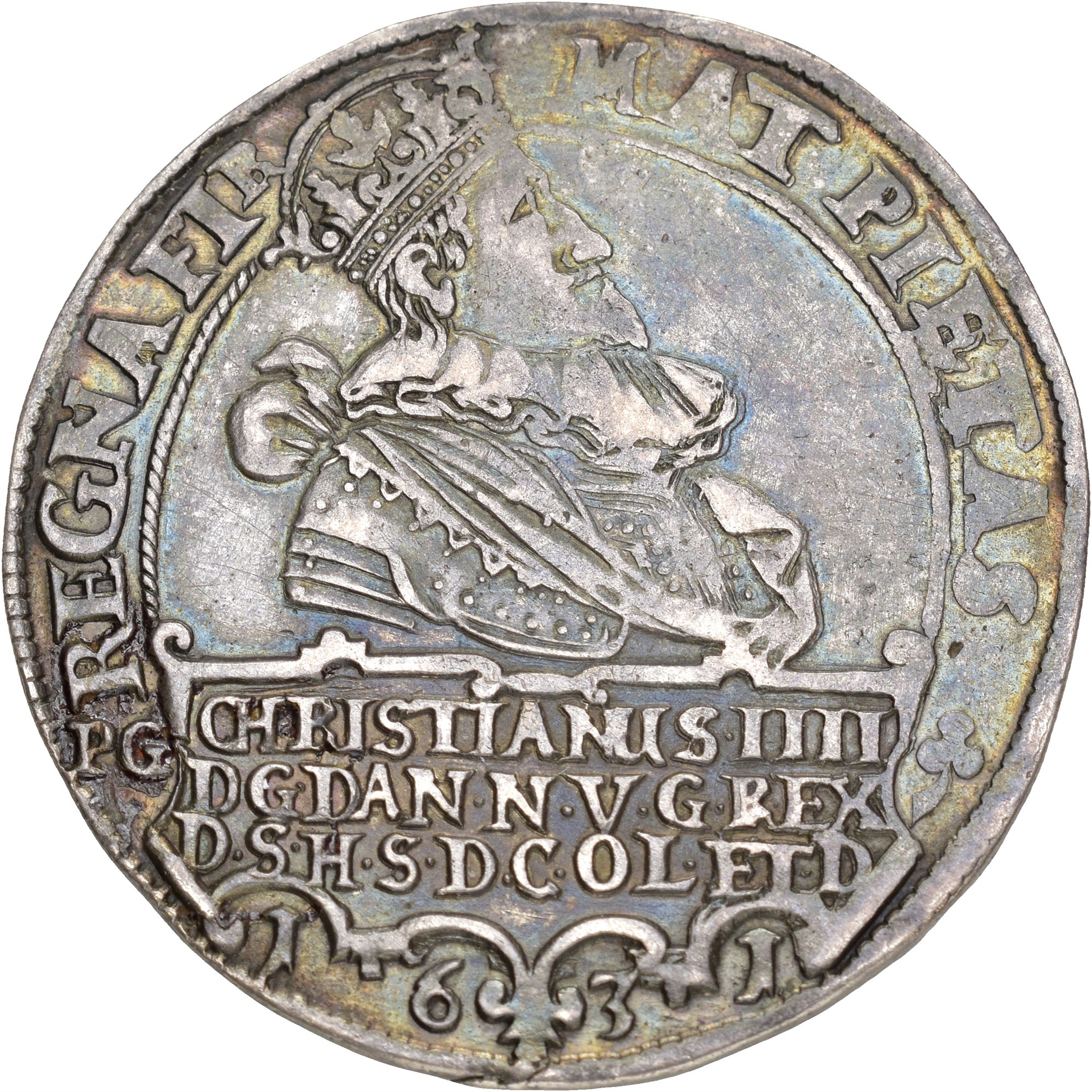 Speciedaler 1631 PG, København. 28.76 g. Sjeldent årstall, fin proveniens og fin toning.