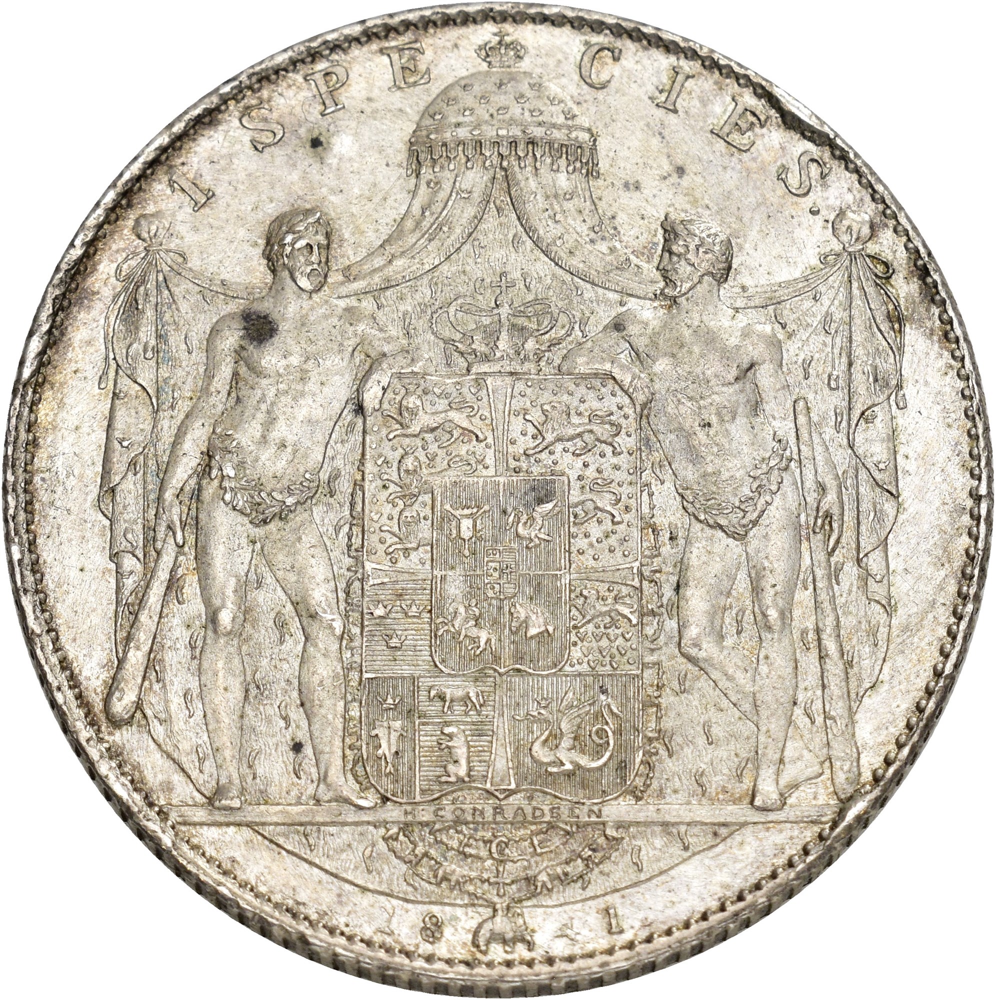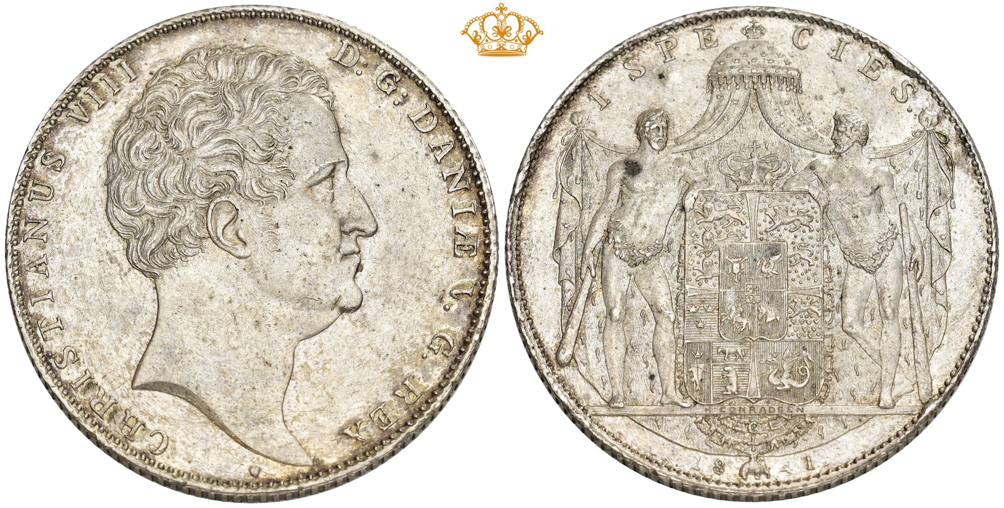 Speciedaler 1841, København. 28.98 g. Flott eksemplar av den meget sjældne hjerte-typen fra 1841.