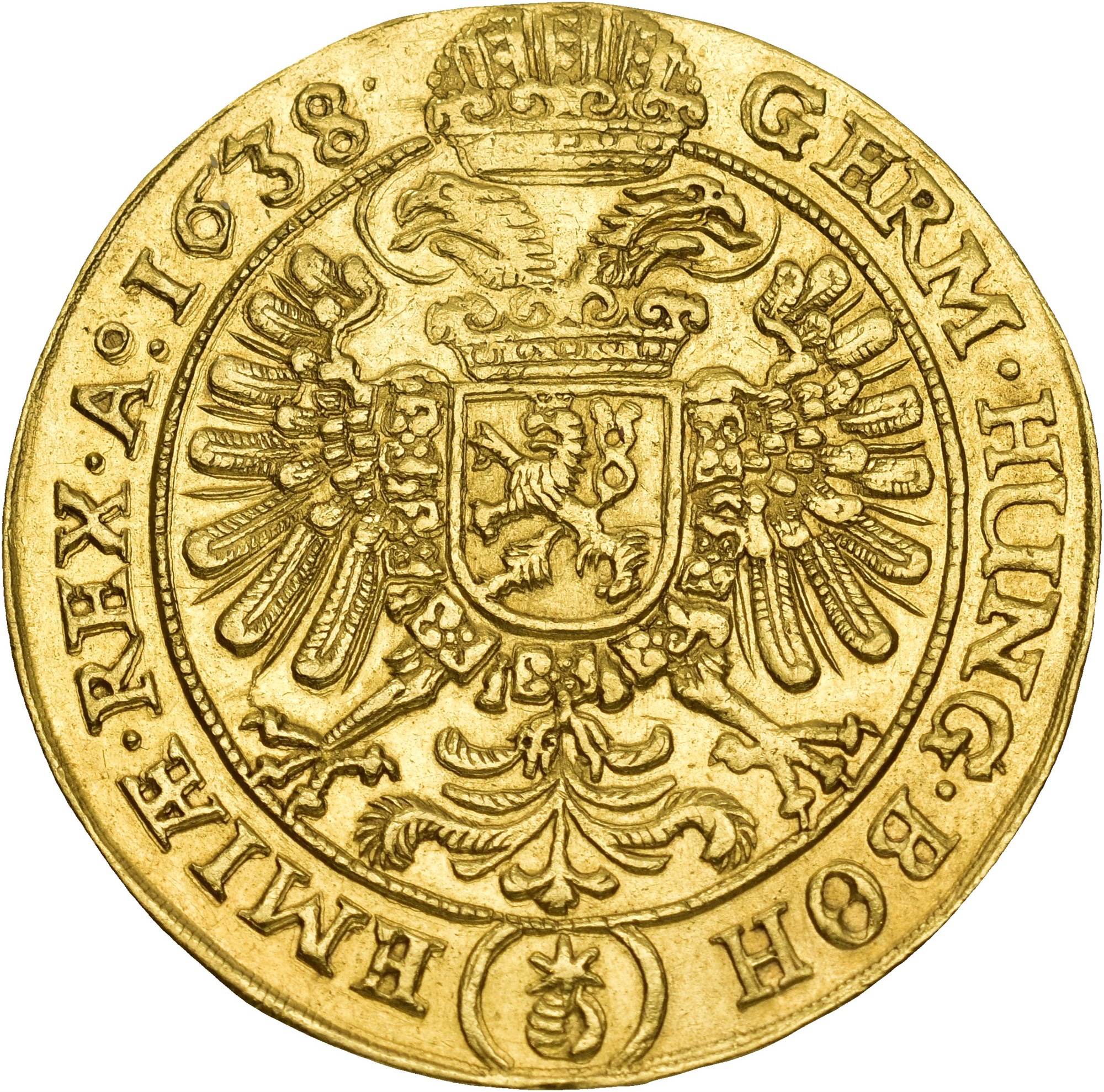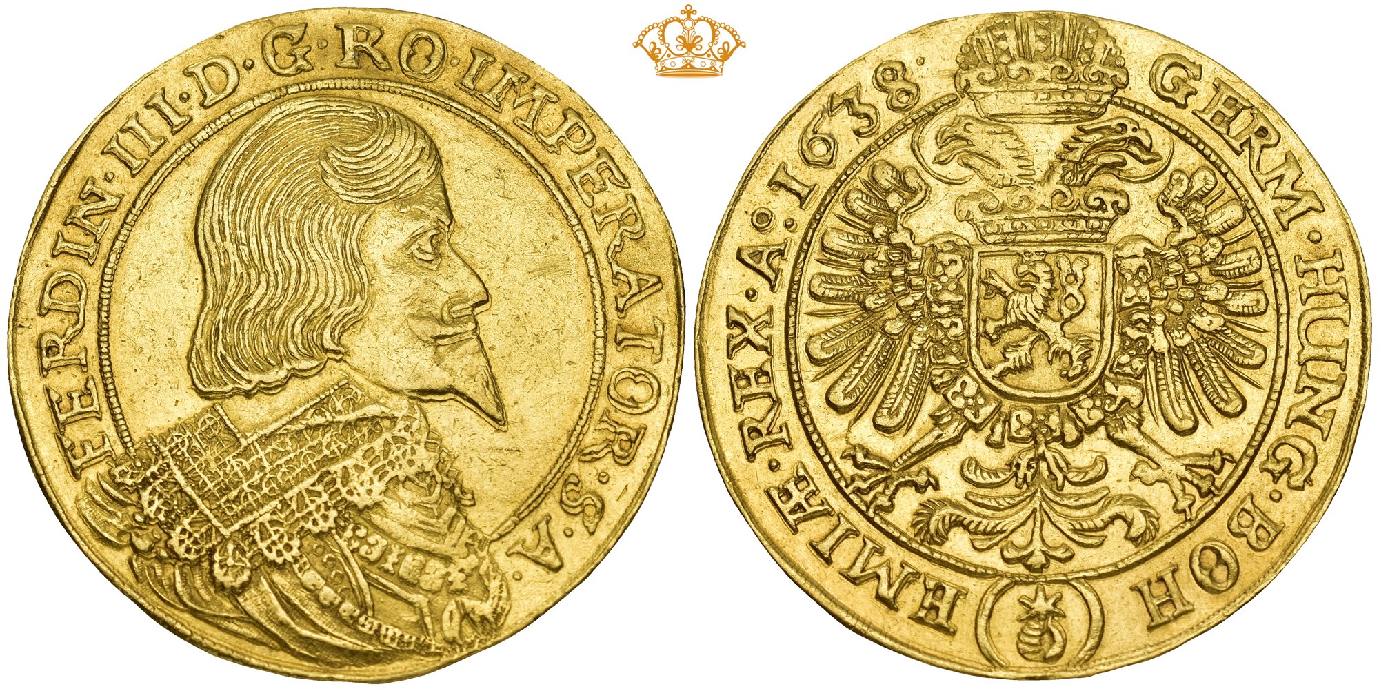 5 Ducats 1638, Prague. 17.22 g. Wernhart Wolker Dietiker. Tooling traces on the edge. / Bearbeidingsspor på randen. Very rare.
