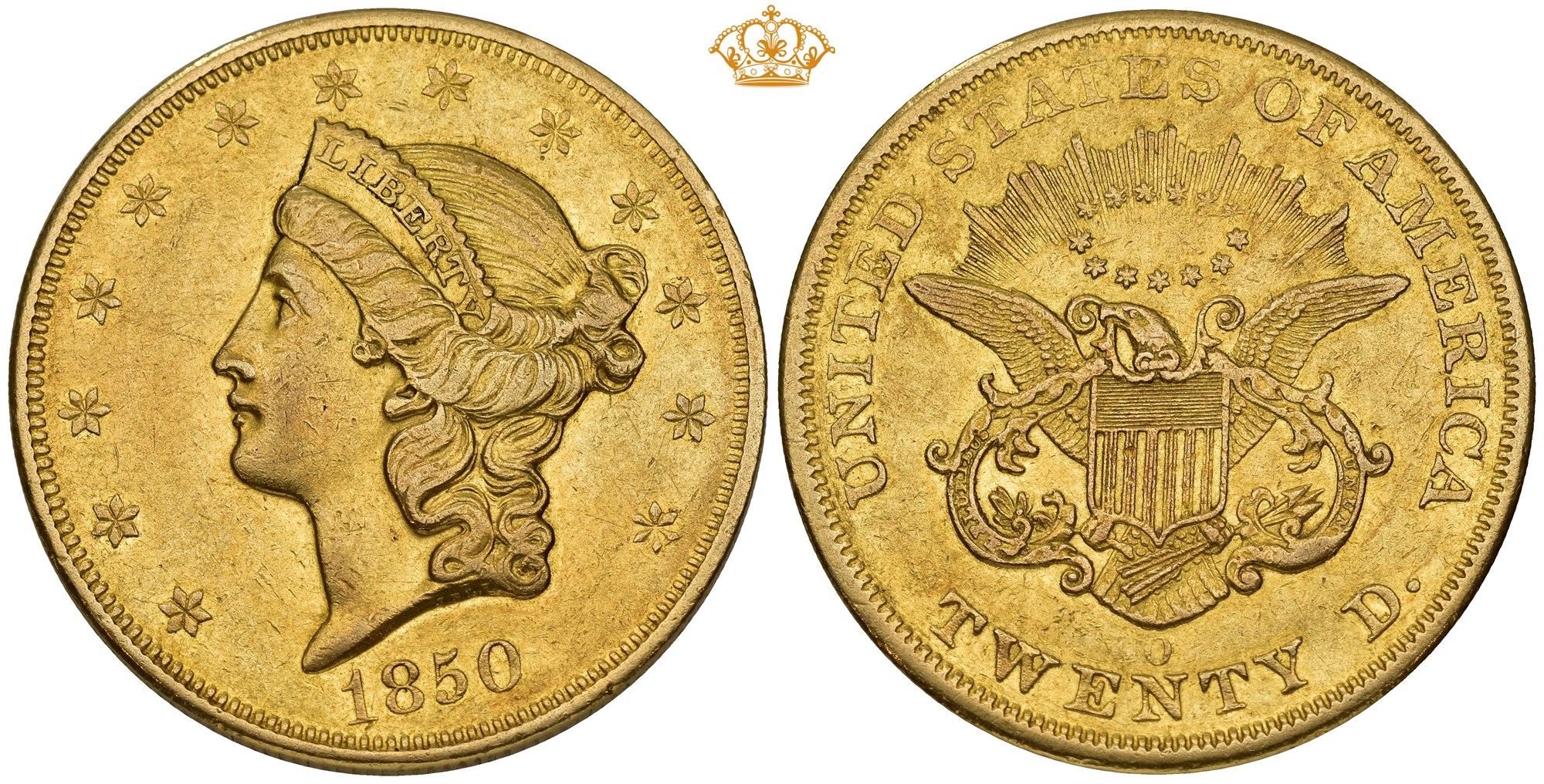 20 Dollars 1850, New Orleans. 33.49 g. Rare
