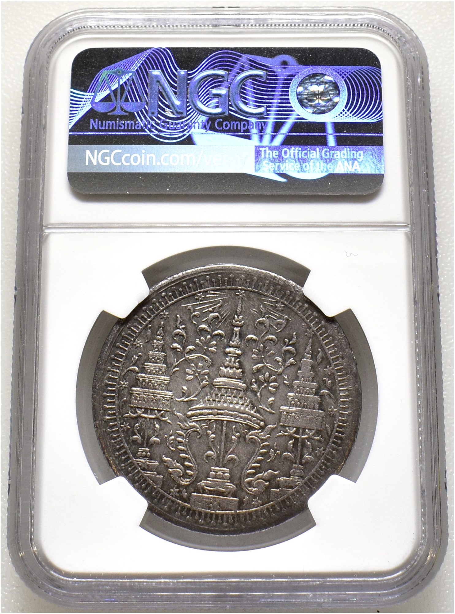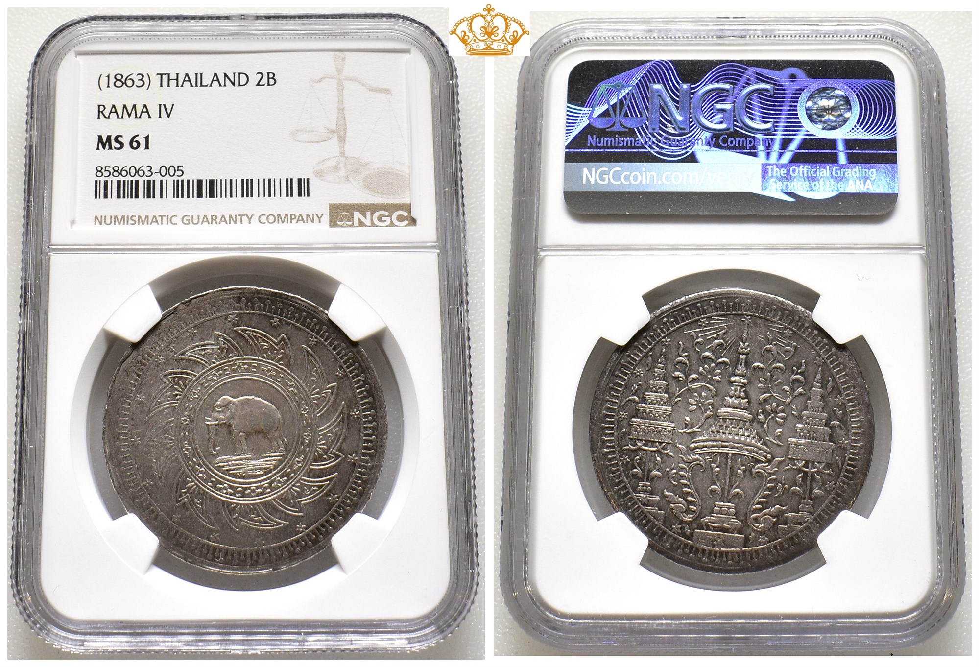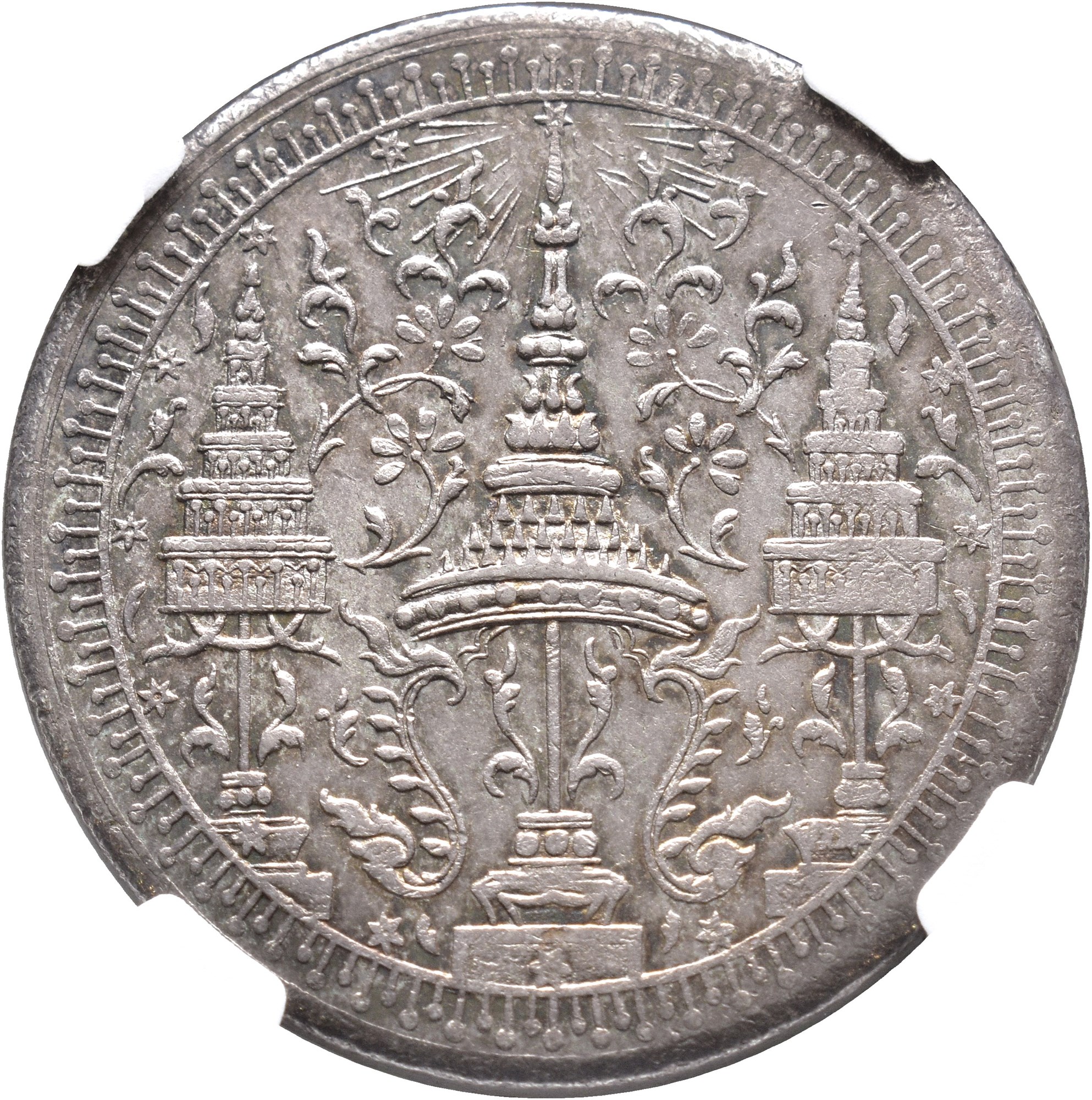2 Bath - 1/2 Tamlung ND (1863). 30,2 g. Elephant left within a chakra; around, sixteen stars denoting the value. Religious inspired motif / design.